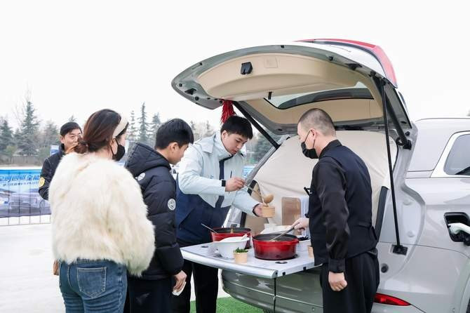 在“全时四驱全能生活”城市试驾体验营现场,“火锅神车”的称号不胫而走。这不是营销噱头,而是真实可触的场景革命:打开后备箱,集成式电磁炉,连接外放电,架起锅具,一场山野火锅即刻开涮;按下按钮,车载充气床垫90秒自动成型,搭配隐私帘,秒变“星空卧房”;车顶投影仪+尾门幕布组合,打造户外观影剧场;中控隐藏式即热饮水机,三秒出热水,四季茶室随手可得。 这一切,源自行业首创的“轮上三室一厅”原厂一体化露营包。无论是3999元的“影院舒享露营包”,还是6999元的“全景旗舰露营包”,所有组件均为车规级原厂配置,可完全收纳,不影响日常通勤,并享受3年6万公里整车质保。