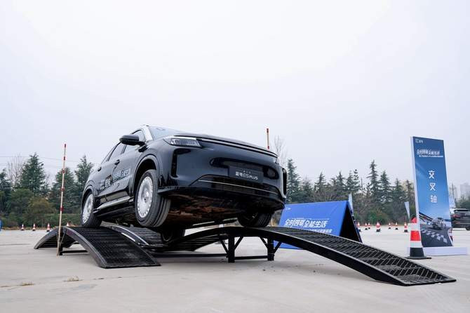 不同于市面上常见的P2.5+P4双电机架构在馈电时降级为两驱,第三代 蓝电E5 PLUS 采用与高端车型同源的三电机全时四驱架构。当车辆处于馈电状态时,P1电机可实时发电补能,确保P3前驱与P4后驱持续工作,实现无论有电还是馈电,始终稳定四驱输出,极大提升了湿滑、冰雪、交叉轴等复杂路况下的通过性与安全性。 活动现场,通过四轮滚轴、侧坡、交叉轴等严苛科目测试,媒体与用户亲历其全地形掌控力。