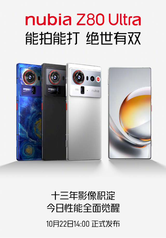 快科技10月11日消息,努比亚Z80 Ultra今天正式官宣,将于10月22日14:00正式发布。